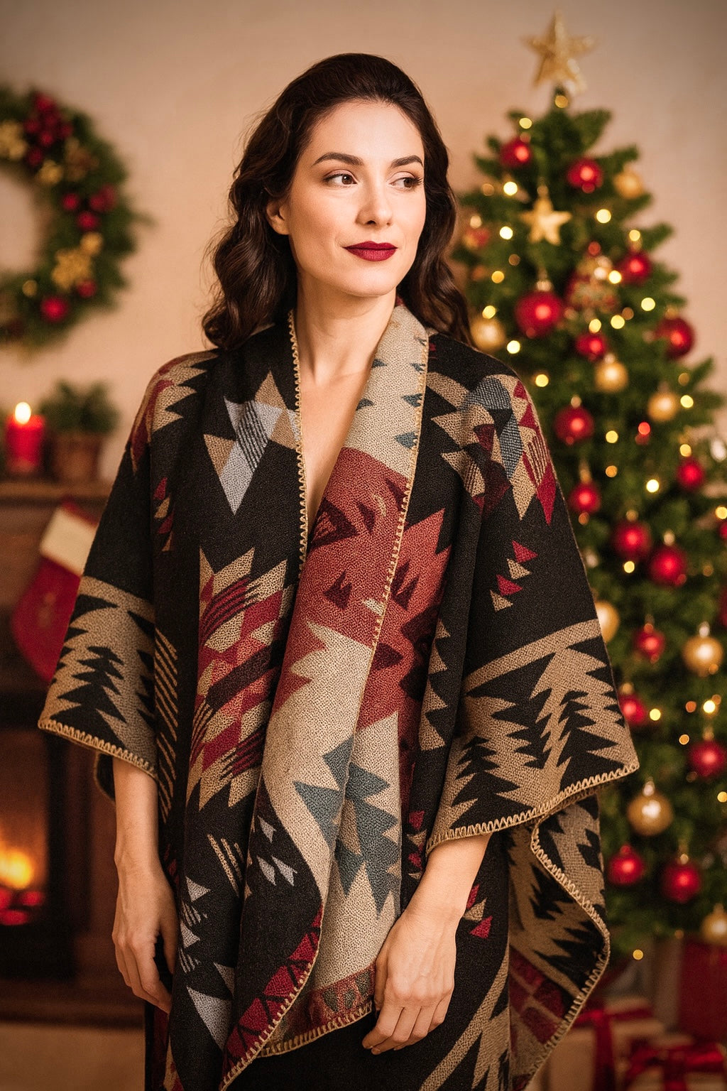 Black and Red Wool Poncho
